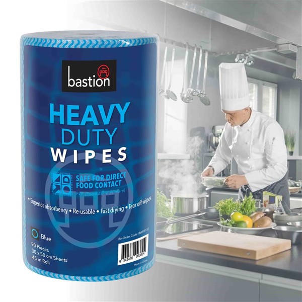 BASTION HEAVY DUTY WIPES ROLL, 30x50CM 45MTR BLUE (4 ROLL-CTN)