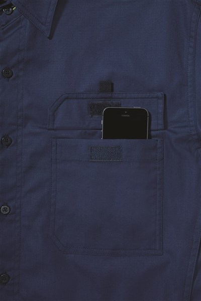 - Pen division and hidden phone pouch on left chest pocket